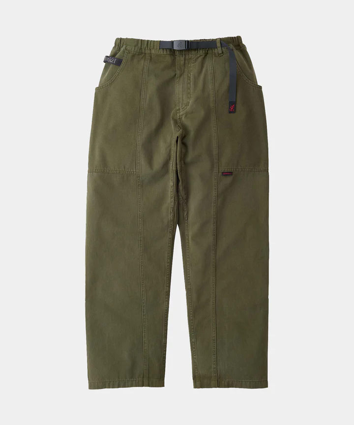 These pants are able to hold gadgets to suit modern lifestyles, while maintaining the functionality during climbing that serves as the brand's roots. Highlighted by large pockets extending from the front to the back, the silhouette has a comfortable looseness. Tough canvas is used for these pockets, while the contrast between the two types of materials through garment dyeing is another notable feature. Also, the webbing belt with the brand logo on the right side is useful outdoors and in the city, as it can hold keys and bottles. They are made of 100% organic cotton twill with high durability, tension, and stiffness that can even withstand strenuous movement and dyed to give character to their appearance.